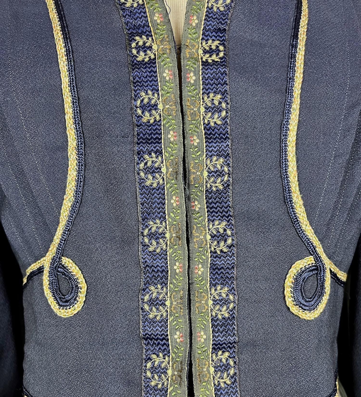 Antique Edwardian 1900s Embroidered Metallic Silk Ribbon Soutache Eton Jacket, Large
