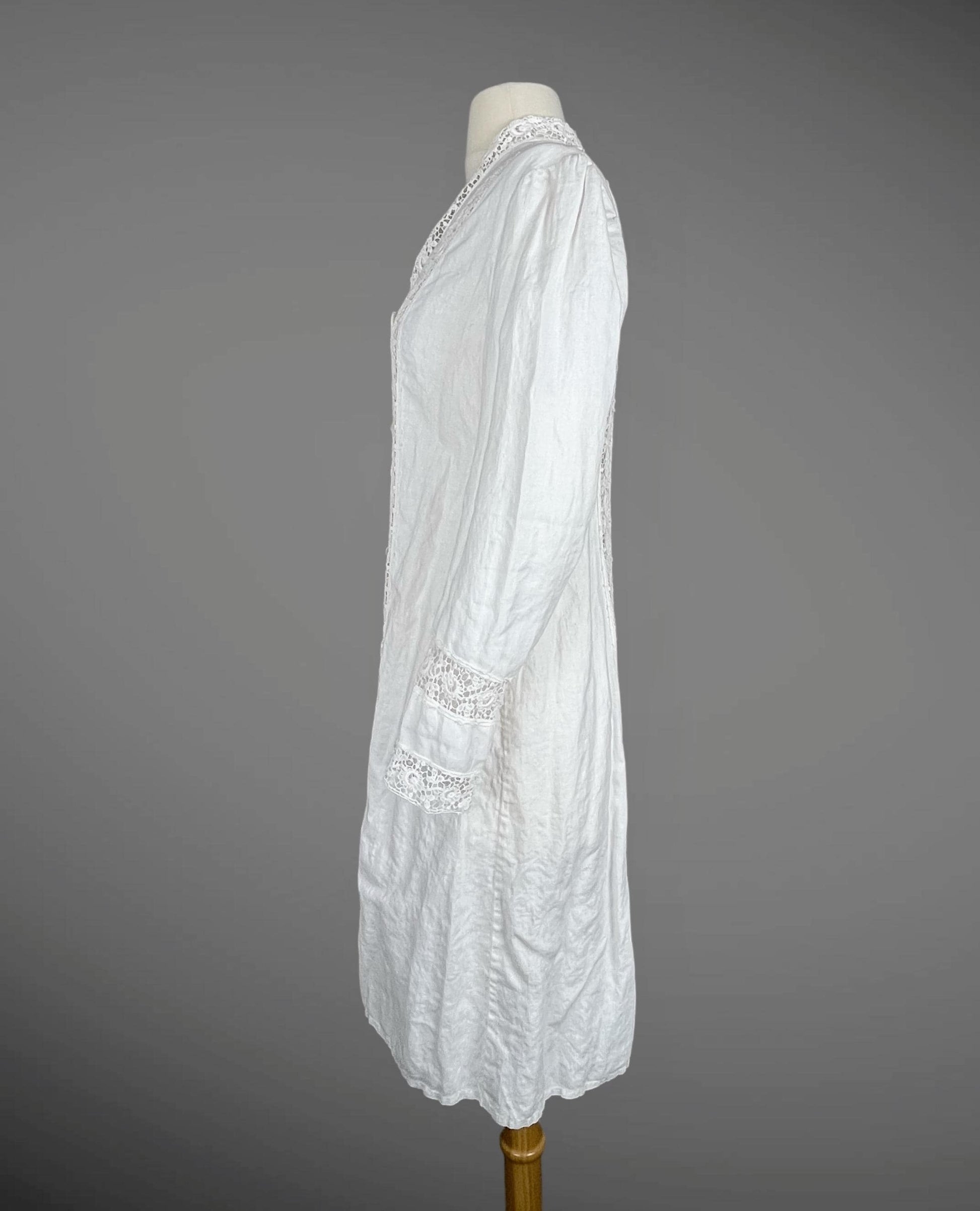 Content: Linen, insertion needlerun lace, Mother of Pearl buttons