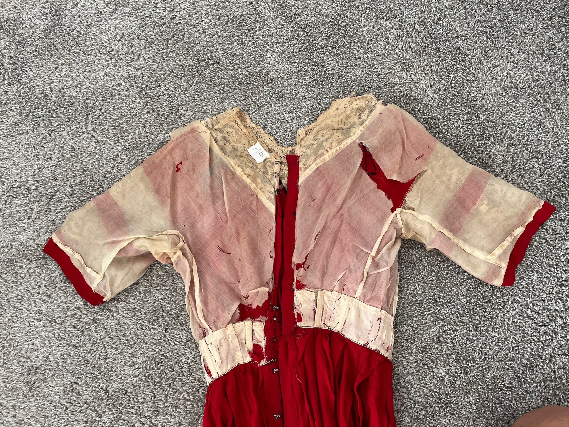 An unusual old alteration is noted: the silk has been brought up at the right underarm over the lace seam (see bottom middle image in the final collage). Please enlarge images for full detail.