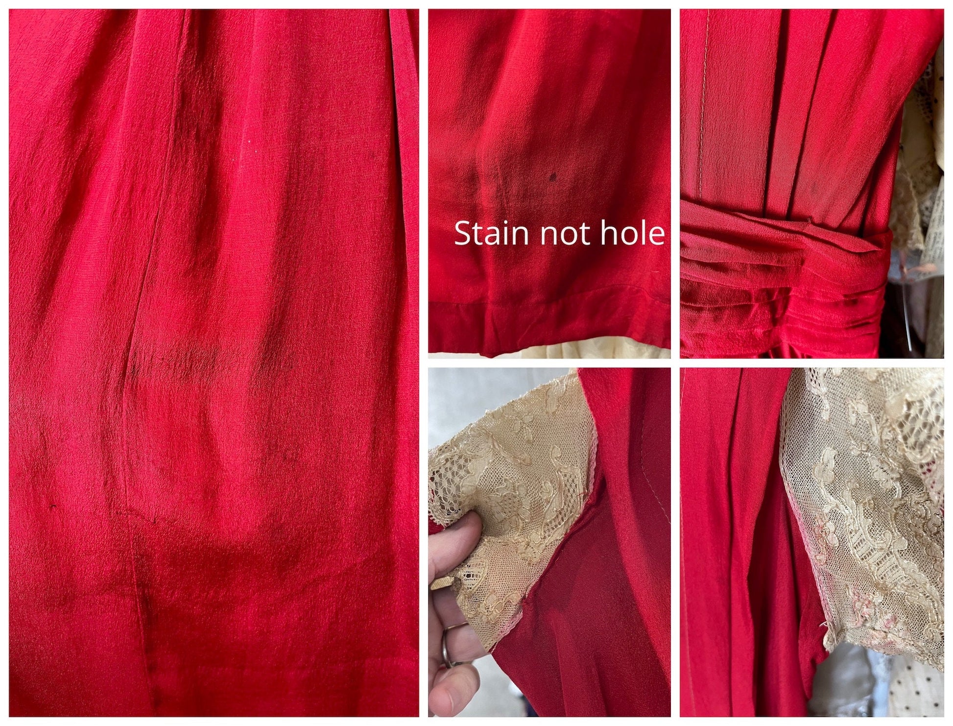 Antique Edwardian 1910s Red Silk Lace Dress, XS