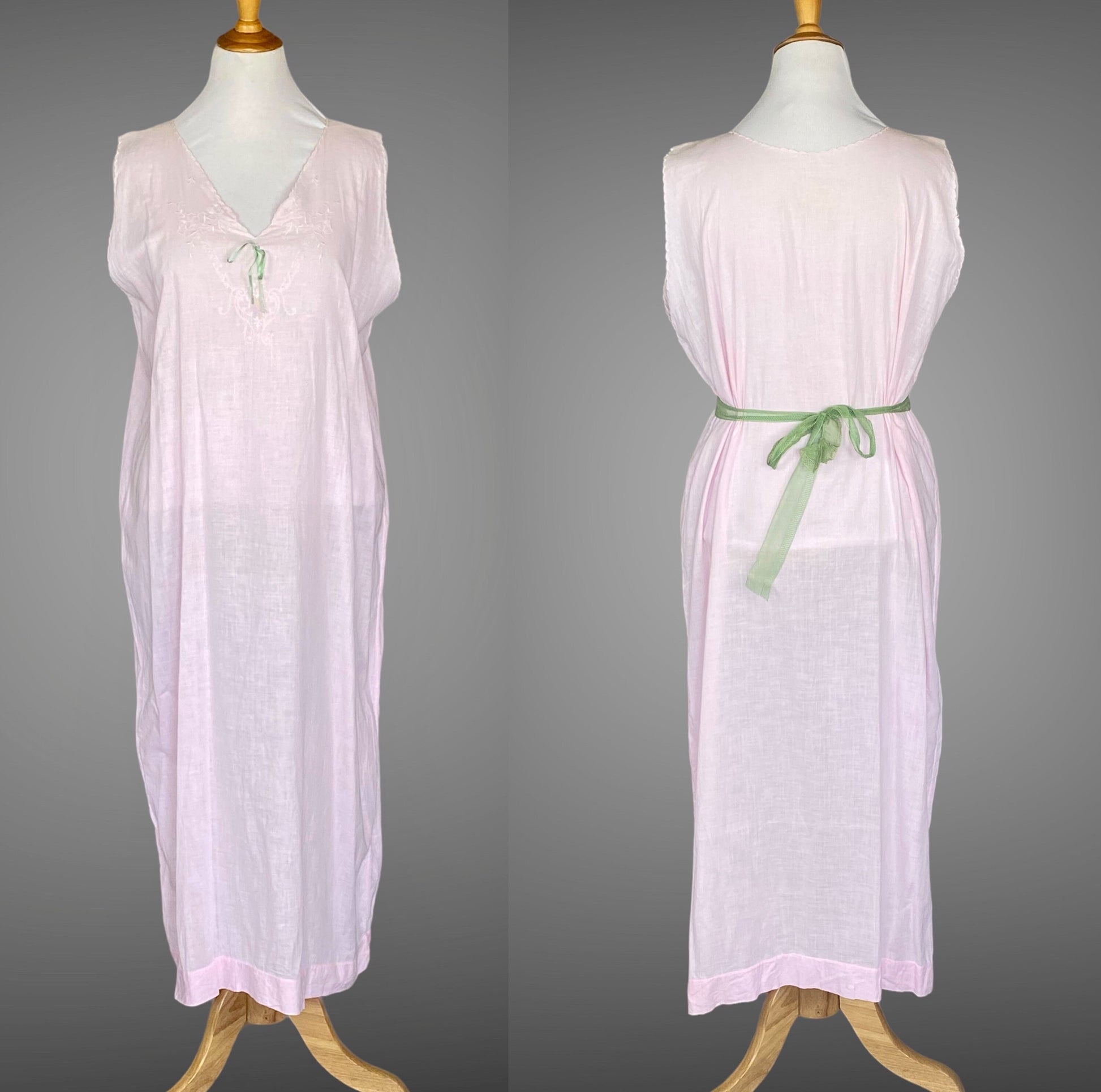 Antique Edwardian 1900s–1910s Pink Cotton Embroidered Nightgown, Large–XL 47" Bust