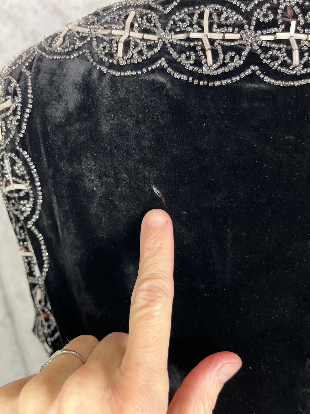 Content: Silk velvet, glass beading