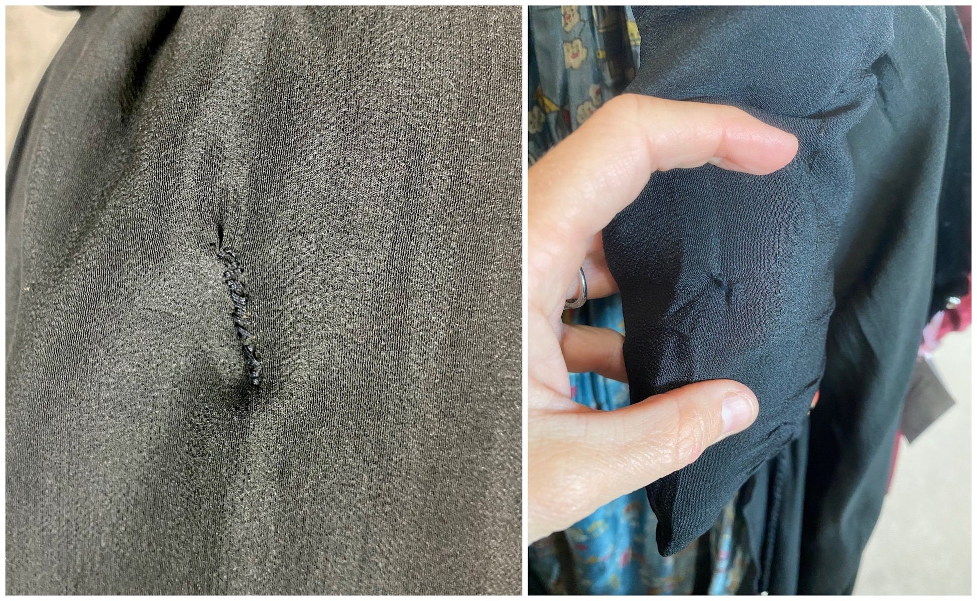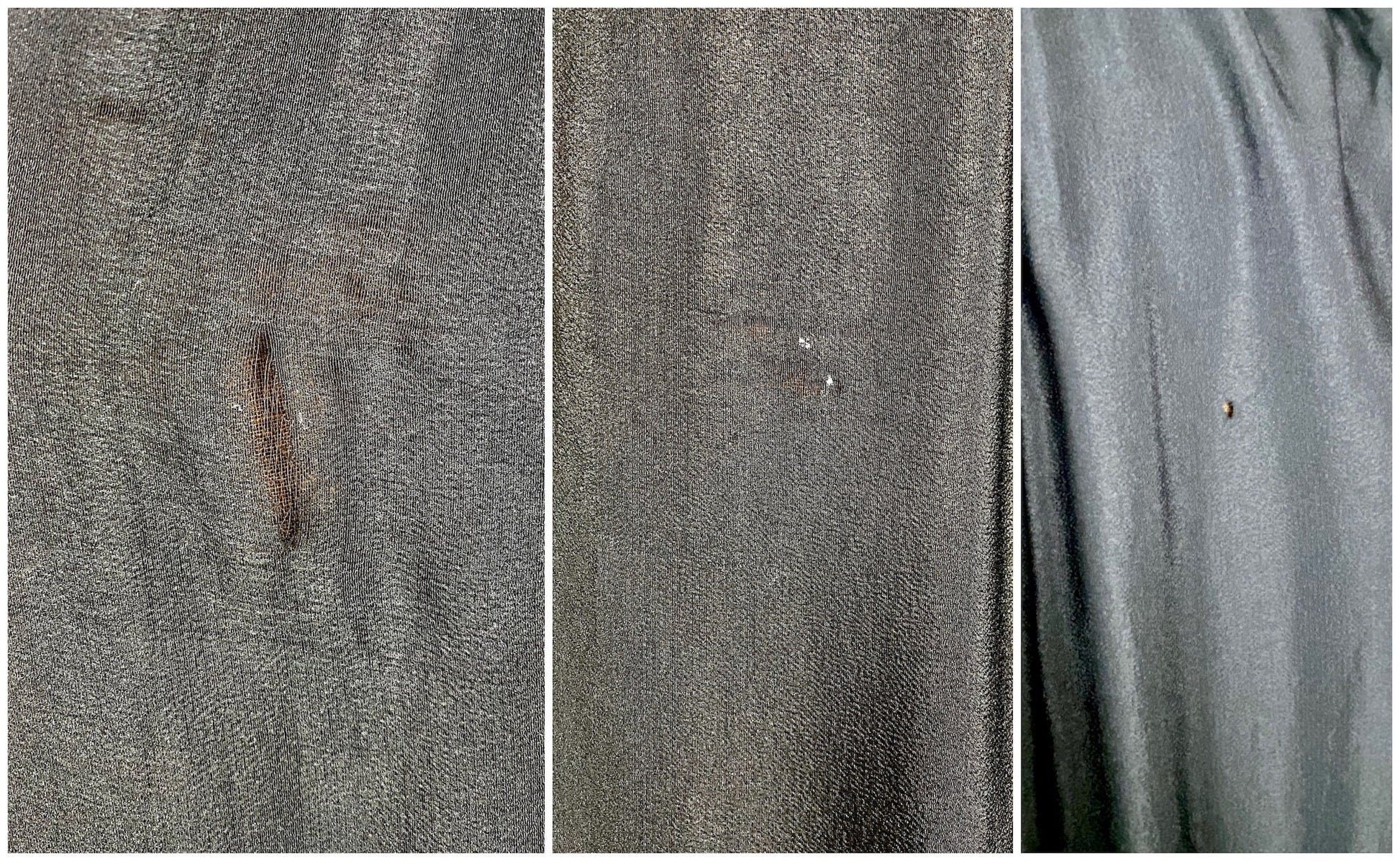 Condition: Good(-) vintage condition. There are areas of thinning to the silk on the back, a small hole, three visible darns, and a thin area above one of the embellishments.